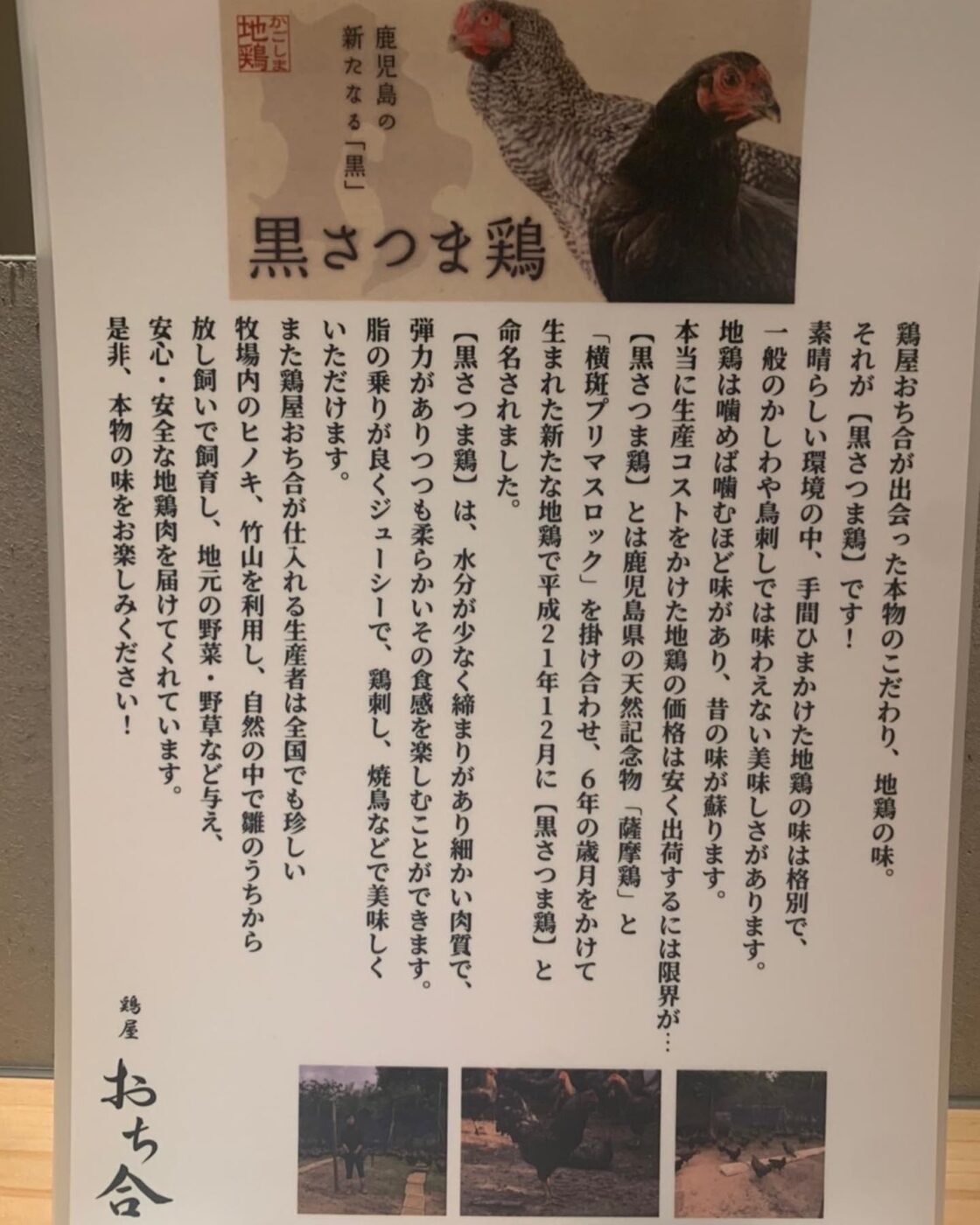 鶏屋 おち合です。