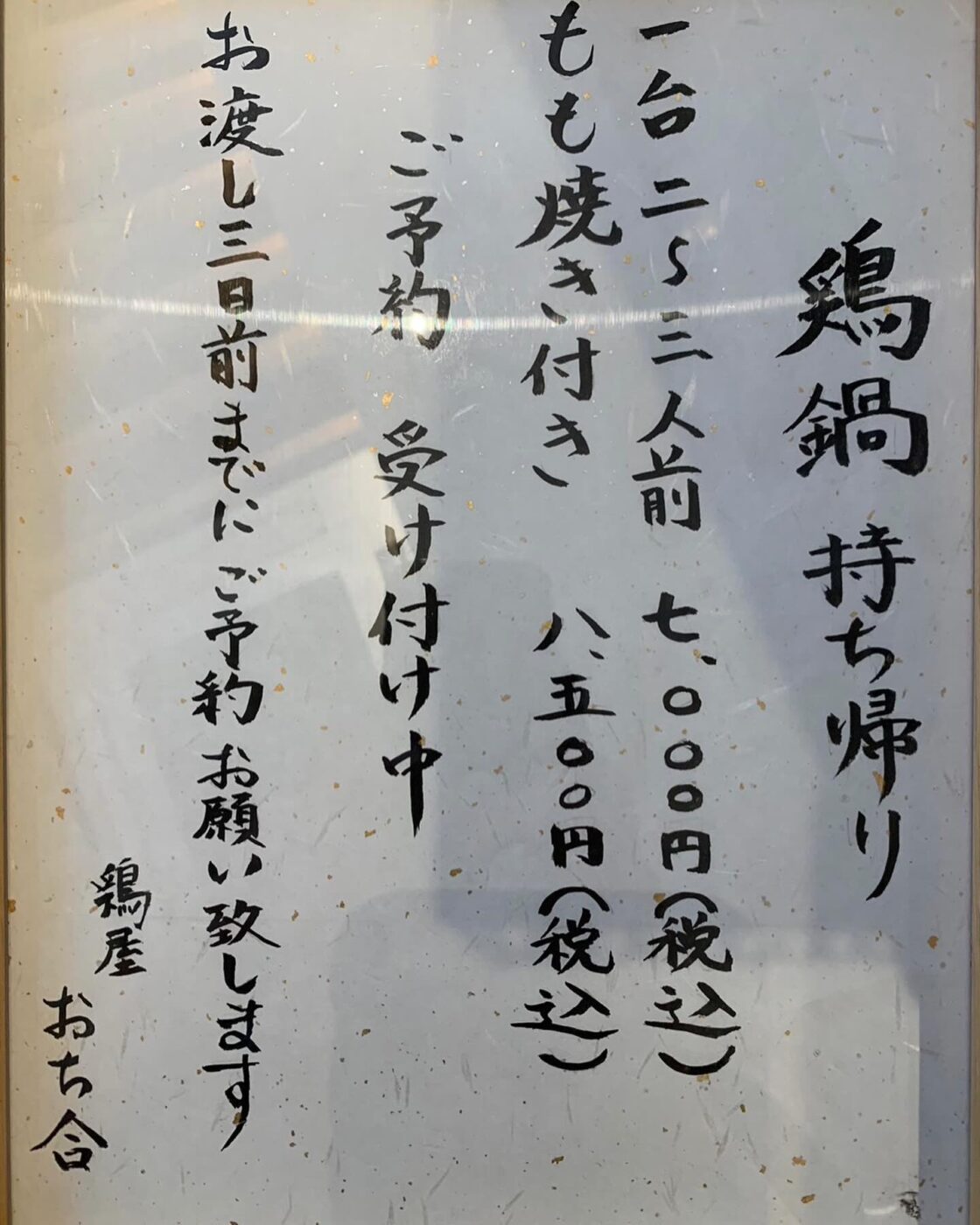 鶏鍋持ち帰りのご予約受付中です